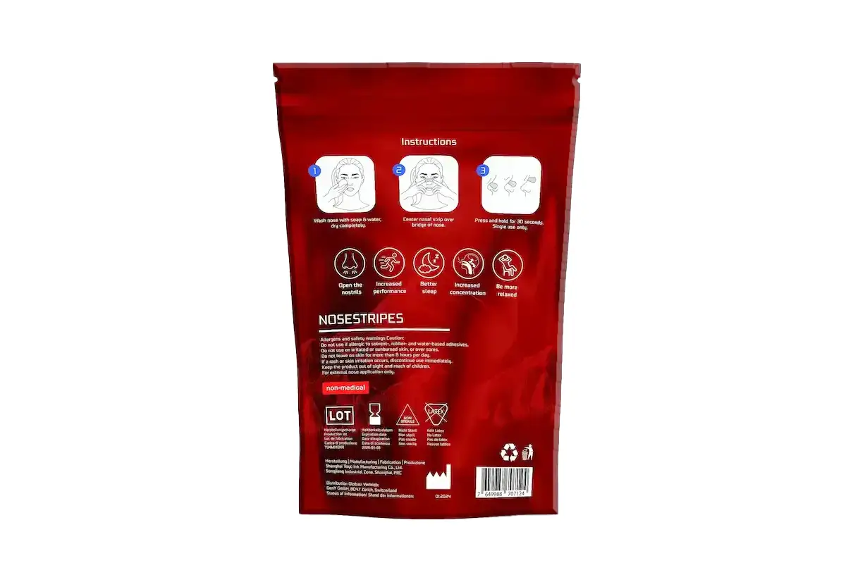 Instructions for use: Wash your nose with soap and water and dry it completely before applying. Press and hold the Nose Breeze nasal patch down until it is securely in place on your nose. When you want to remove the snore stoppers, wash your face with warm water and begin to gently peel the strip from each end.